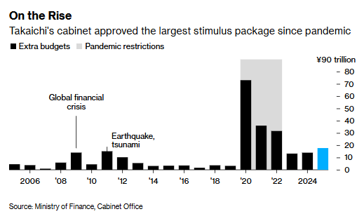 “最初的预算规模已相当可观,但最终呈现出少数派政府特有的博弈过程——他们必须纳入在野党的合作诉求,”瑞穗综合研究所高级经济学家Saori Tsuiki指出,“若规模扩大向市场或海外传递出意想不到的信号,进而加剧日元贬值风险,该计划的预期经济成效可能会打折扣。”